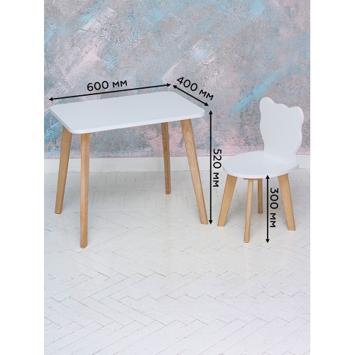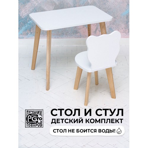 Комплект детской мебели «Мишка»: стол и стул, МДФ белый/дерево/ЛДСП