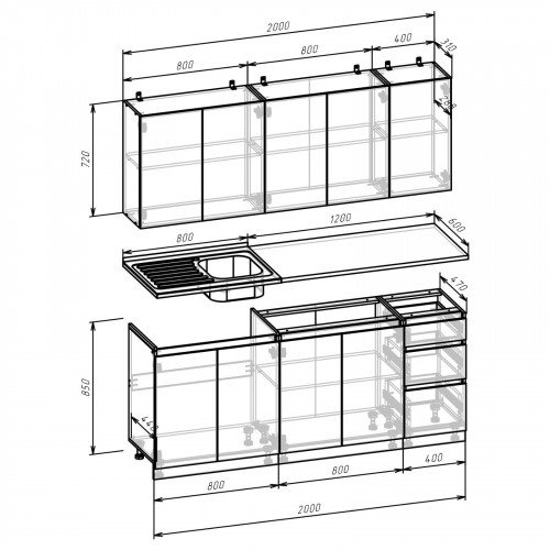 Кухонный гарнитур прямой «Зара», с столешницей, 2000×600 мм, цвет белый