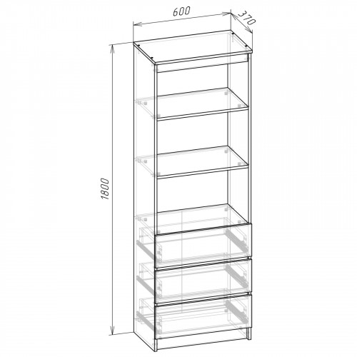 - Расстояние между полками, мм344